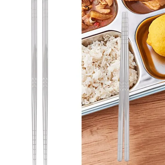 Välkommen till vår butik! Våra premiumätpinnar i rostfritt stål är tillverkade av livsmedelsklassat 304 rostfritt stål, vilket garanterar styrka, hållbarhet och utmärkt korrosionsbeständighet utan deformation. De tål maskindisk och passar perfekt i de flesta diskmaskinskorgar, eller kan enkelt rengöras med tvål och en svamp. Dessa mångsidiga ätpinnar är perfekta för att njuta av nudlar, ris, sushi, koreansk barbecue och mer. Den polerade ytan förhindrar rost och överhettning, vilket gör dem bekväma att hålla i och lämpliga för fester, hotell, restauranger och hemmabruk. Återanvändbara och miljövänliga, de är ett säkert alternativ till engångsätpinnar, med en greppvänlig, halkfri design och lång livslängd. Varje par är silverfärgat, väger cirka 16 g (0,6 oz) och mäter 17,5 cm (6,9 tum) i längd. Nöjdhet: Våra kunder är vår högsta prioritet. Om du upptäcker några produktproblem efter att du mottagit varorna, såsom skador och felaktig mängd varor, vänligen kontakta säljaren omedelbart. Vi gör vårt bästa för att ge dig tillfredsställande kundservice.