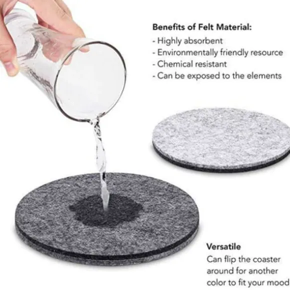 Vare sig du använder dem i vardagsrummet, köket eller på kontoret, kommer dessa glasunderlägg att vara ett praktiskt och stilfullt tillägg till ditt hem. Ge dina gäster ett varmt välkomnande och njut av att ha ett rent och snyggt hem med dessa vändbara glasunderlägg i grå filt.