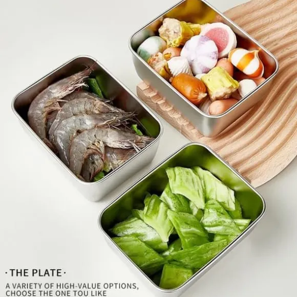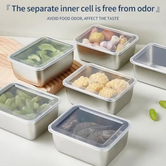 Dessa 10 matlådor i livsmedelsklassat 304 rostfritt stål kombinerar stil och funktion. Varje låda är utrustad med ett tätslutande plastlock som håller maten fräsch längre och förhindrar lukt. Perfekt för lunch på kontoret, måltidsplanering eller picknick utomhus.