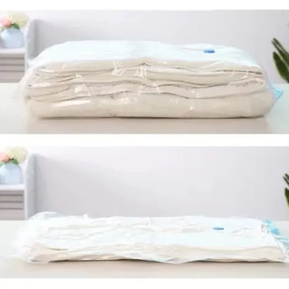 Slipp trångt i garderoben och skydda dina kläder och textilier mot damm, fukt och ovälkomna dofter med dessa smarta vakuumpåsar! Perfekt när du vill spara plats, oavsett om du packar inför en resa, ska förvara vinterkläder eller bara vill slippa röran i förrådet. Fyll påsen med det du vill, sug ut luften med en vanlig dammsugare och se hur volymen minskar med upp till 80 %. Dessa slitstarka påsar kan användas om och om igen – lika bra vid flytt som till vardags. Kläderna håller sig fräscha och skyddade, och du slipper oroa dig för vatten, smuts eller skadeinsekter. Enkelt, praktiskt och riktigt platsbesparande!