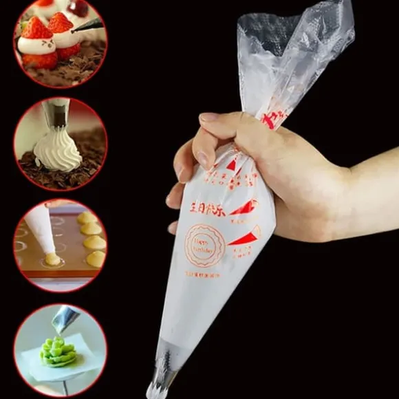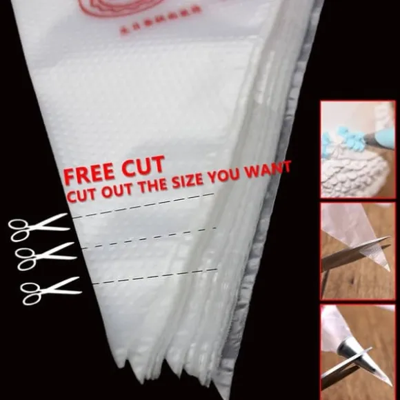 Proffsiga spritspåsar i högsta kvalitet som gör det enkelt att dekorera tårtor, kakor och muffins. Öppningen kan klippas för att passa just dina tyllar. Dessa påsar är genomskinliga med röd text.