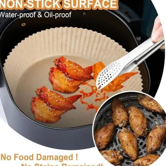 Luftfritösens bakplåtspapper är designat för att passa alla luftfritöser med en storlek på 20~24 cm, för fettfri stekning 5 till 8 liter. Bakplåtspappret för luftfritöser hjälper till att minska rengöringen efter matlagning eftersom det förhindrar att mat fastnar.