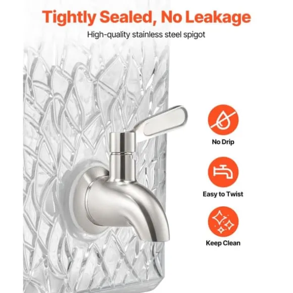 - Droppfri kran: Rostfritt stål kranen är tätt förseglad för läckagefri dispensering, vilket håller din dryckesstation ren och snygg.