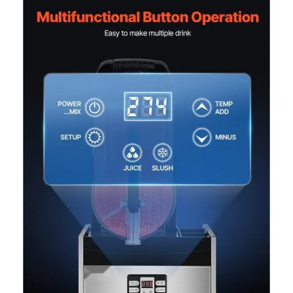 Enkel användning: Den användarvänliga kontrollpanelen möjliggör enkel användning, inklusive två lägesinställningar (slushig och kall dryck), automatisk rengöring, temperaturkontroll och tidsinställningar. Temperaturen visas tydligt på den digitala skärmen, vilket gör det enkelt att övervaka när som helst.