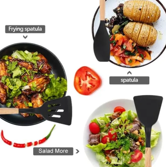 Silikonverktygen tål höga temperaturer upp till 230 grader, vilket gör dem idealiska för alla typer av matlagning och kokkärl.