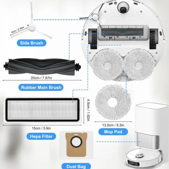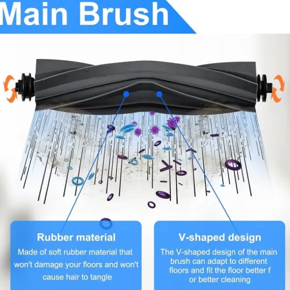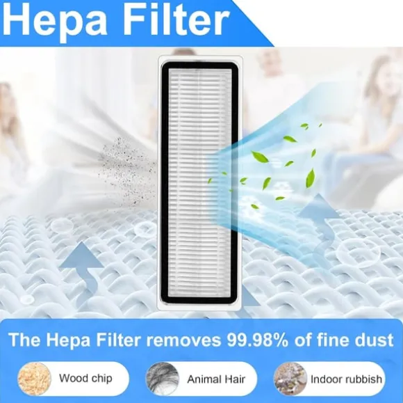 Setet innehåller en huvudborste med smart V-formad design för noggrann dammuppsamling, effektiva sidoborstar som når in i hörn och längs kanter, samt tvättbara moppdukar som rengör skonsamt men grundligt. HEPA-filtren fångar upp 99,98 % av mikrodamm och partiklar, vilket bidrar till en friskare inomhusmiljö.