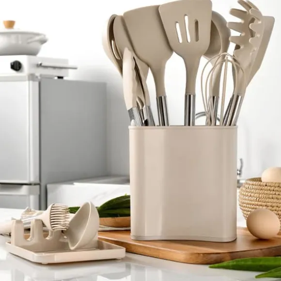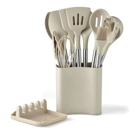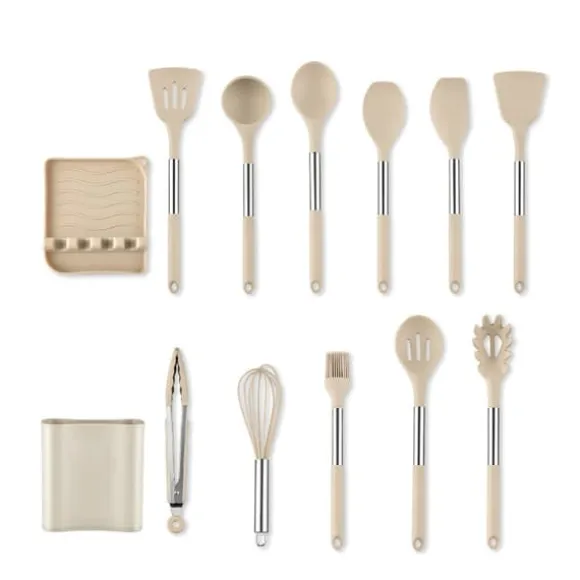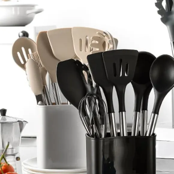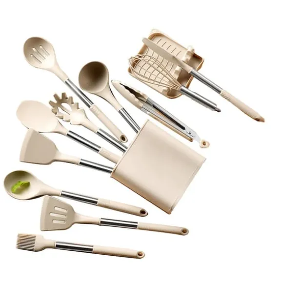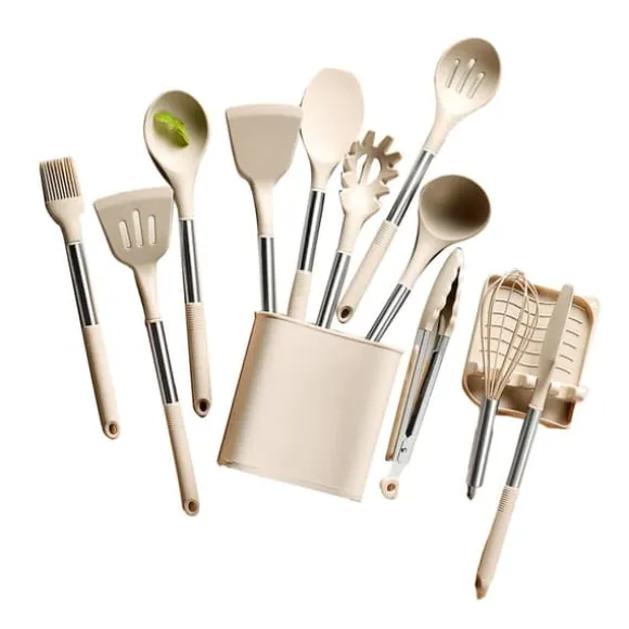 1、 Komplett redskapsuppsättning: Detta set innehåller en mängd olika redskap för alla dina matlagningsbehov, inklusive skedar, spatlar och slevar, vilket gör den lämplig för alla typer av rätter och recept.