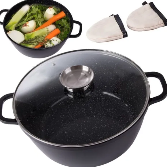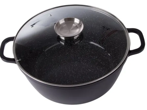 Kastrullen ärtillverkad av högkvalitativ aluminiumlegering som hartryckgjutits. Den ärlätt men stark och leder effektivt värme. Detta gör den idealiskför matlagning på olika typer av spisar, inklusive induktionspisar.