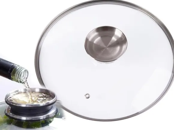 Det stora glaslocketmedångutsläpp ventilgör det möjligt att kontrolleratrycket och temperaturen i kastrullen.