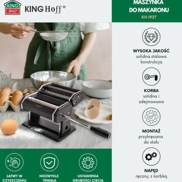 Med KINGHOFF-maskinen kommer du att upptäcka hur enkelt och trevligt det kan vara att förbereda färsk pasta eller pirogideg. Det är en investering i smak, kvalitet och kulinarisk njutning för många år framöver.