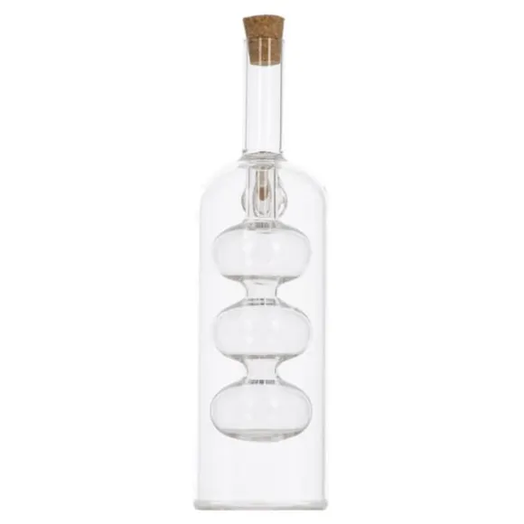 Denna 2-i-1 olja/vinägerflaska med en kapacitet på 290 ml är den perfekta lösningen för alla som letar efter en funktionell och designad kökstillbehör.. Tillverkad av högkvalitativt glas garanterar det hållbarhet och elegans som kommer att ge charm till alla bord. Den har designats med komfort i åtanke. Dess ergonomiska form gör att den ligger perfekt i handen, och det specialdesignade locket säkerställer exakt utmatning av olja eller vinäger.. Du behöver inte längre oroa dig för att hälla för mycket eller för lite – denna flaska säkerställer perfekta proportioner.