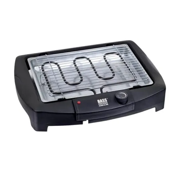 ELEKTRISK GRILL FÖR TRÄDGÅRD OCH HEMANVÄNDNING SOM BORD ELLER FRISTÅENDE GRILL Effekt: 2000 W / 2800 W, E 4000 Spänning: 230 V / 50 Hz Mått på grillen: 40 x 29 cm FÖRDELAR MED BASS FUNC POLSKAEL TWO – GRILL FÖR HEM OCH TRÄDGÅRD! Bass Polska elgrill kombinerar funktionerna hos en bordsskiva och fristående grill. Denna praktiska lösning gör att grillmatälskare kan njuta av sin smak året runt! Grilla oavsett väder! Beroende på dina behov kan du placera bordsgrillen på en köksbänk eller ett bord. Tack vare sin lilla storlek kan bordsgrillen även användas som elgrill för balkongen. Om du har en större balkong, terrass eller trädgård, skruva helt enkelt på benen och hyllorna för att förvandla den elektriska bordsgrillen till en fristående grill. Stabila ben med plastfötter gör att du kan använda grillen på gräsmattor och mjuka ytor. Detta blir en perfekt grill för tomten. EKOLOGISK RÖKFRI GRILL! Elgrillen genererar ingen rök och är ett miljövänligt alternativ för den som bryr sig om miljön. Till skillnad från en kolgrill värms en elektrisk grill snabbt upp och kräver ingen tidskrävande tändning. Tryck bara på en knapp och du är klar! Grillen är klar på bara några ögonblick! BEKVÄM GRILLNING. Grillen är utrustad med ett brett, rymligt galler, på vilket du enkelt kan laga en måltid för hela familjen. Det rostfria gallret är idealiskt för att tillaga korv, kebab, kyckling eller grönsaker. Gallret värms jämnt över hela ytan och är oersättligt för att tillaga den perfekta steken. Rostens non-stick beläggning möjliggör fettfri grillning. Den extra hyllan rymmer en bricka med ytterligare en portion mat som ska tillagas, tallrikar eller bestick. Två sidohyllor ökar grillens arbetsyta. SNABB GRILLRENGÖRING. Elgrillen 2-i-1 har en praktisk behållare för droppande fett. Fyll bara på med vatten så att fettet som droppar inte bränns. Tack vare denna lösning släpps inga giftiga ämnen ut i luften eller i maten, och grillytan är inte täckt med ett lager fett. Det non-stick belagda gallret tål diskmaskin. VINDSKYDD. Det höga locket skyddar gallret från vinden och förhindrar att maten kyls ner under tillagningen. YTTERLIGARE FÖRDELAR MED BASS POLSKA GRILLEN: Justering av gallrets höjd på två nivåer. Extra minigaller monterat på vindrutan. Redo att arbeta indikator. Termostatkontroll. Enkel montering. Benen är försedda med plastfötter.