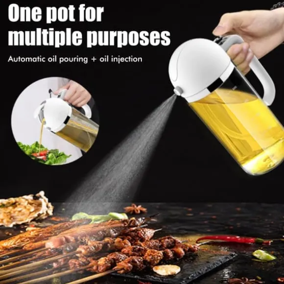 1、 【Design med dubbla ändamål för sprutning och hällning】: 2021 uppgraderingsdesign, inte bara kan spraya olja som en vanlig injektor, utan också hälla olja. Du kan njuta av båda i denna 500ml borosilikatglasflaska. Den kan användas som en olivoljaspray eller oljedispenser. Du behöver inte köpa en annan oljeflaska för att hälla olja.