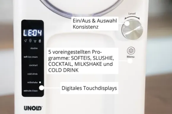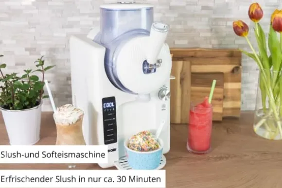 2-i-1 slush- och mjukglassmaskin SOFIE (vit, för 1 500 ml slush eller mjukglass, 150 watts kompressor)