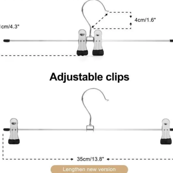 Denna 35 cm byxhängare är speciellt designad för att hålla kjolar och byxor. Den är också perfekt för att hänga upp föremål som lakan, halsdukar, mattor och handdukar, jeans, kjolar, byxor