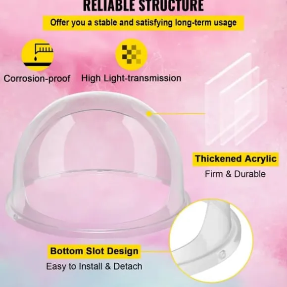 – Rimlig storlek: Denna toppkupol med en diameter på 21″ har den idealiska diametern för att passa de flesta sockervaddsmaskiner med skålar med en diameter på cirka 19,7″-21″.