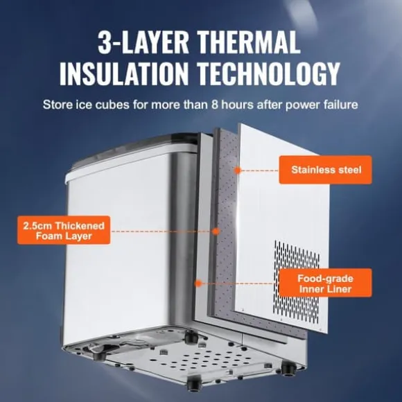 -Håll kylan inne: Den bärbara ismaskinen har ett 2,5 mm skumlager, skall av rostfritt stål och tre lager isoleringsmaterial, vilket gör att den kan hållas i över 8 timmar vid strömavbrott.