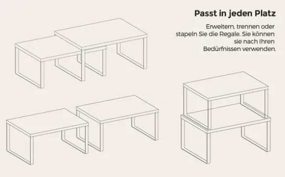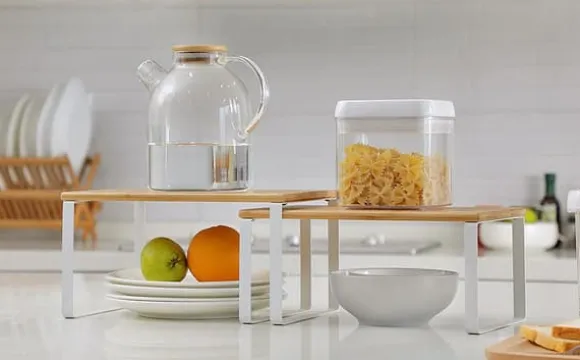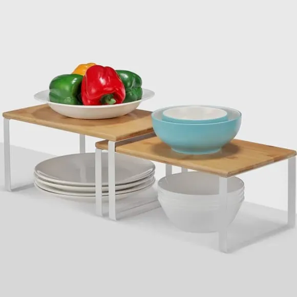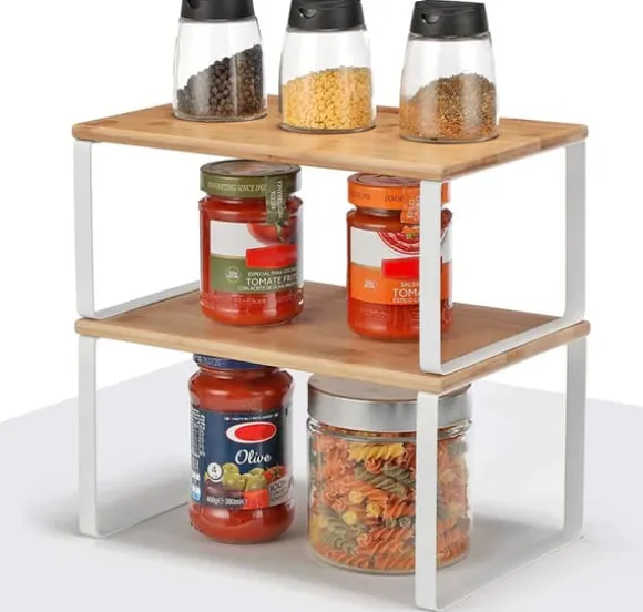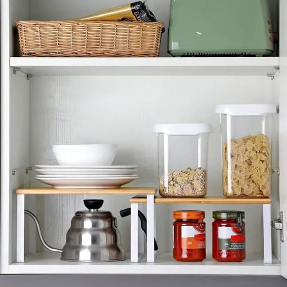 – I köket: Placera hyllorna i skåpet eller på bänkskivan i köket för att skapa mer förvaringsutrymme och fler förvaringsmöjligheter för kryddburkar, burkar, skålar med mera. Man kan väl aldrig ha för många förvaringshyllor i köket? 2 räcker.