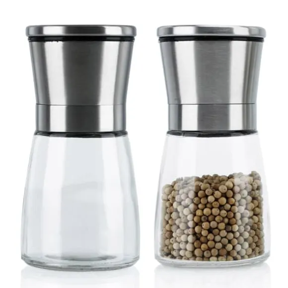 2x Grinder Handkvarn av glas och rostfritt stål för köket, perfekt för att mala och krossa peppar, salt, kryddor och mycket mer.