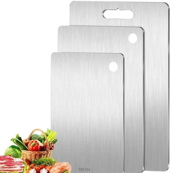 3-pack Skärbrädor i rostfritt stål – Tåliga, hygieniska och mångsidiga