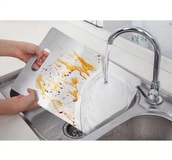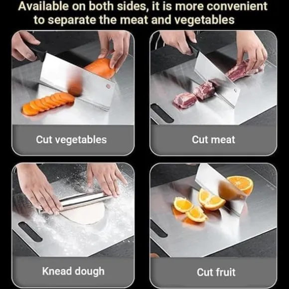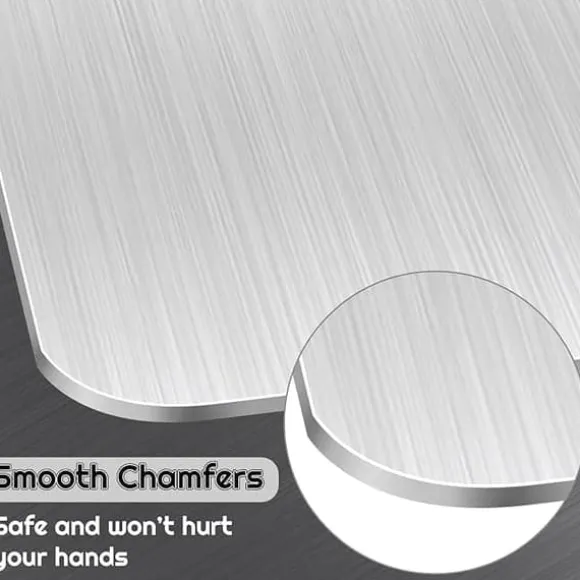 Tillverkade av robust 1,2 mm tjockt 304 rostfritt stål är dessa skärbrädor mycket hållbara och motståndskraftiga mot vassa knivar, hackning och tärning. Perfekta för dagligt bruk i köket.