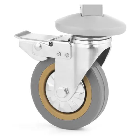 Vart och ett av de 4 hjulen på vagnen är utrustad med en broms. En ljuddämpande matta är limmad under hyllorna.