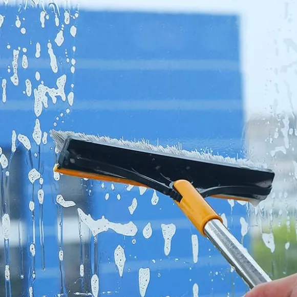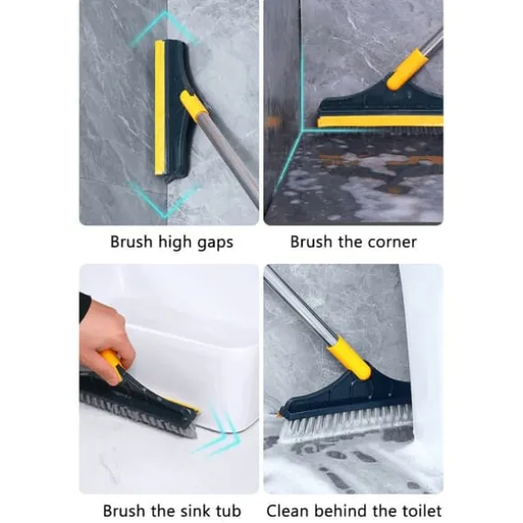 1、【3-i-1 borste och skrapa】 Den långskaftade slipborsten kan användas på baksidan av skrapan för att skura avloppsvattnet efter att ha sopat golvet. Torka och borsta golvet samtidigt, rengör och torka med bara en duk! Få din städning gjord snabbt.