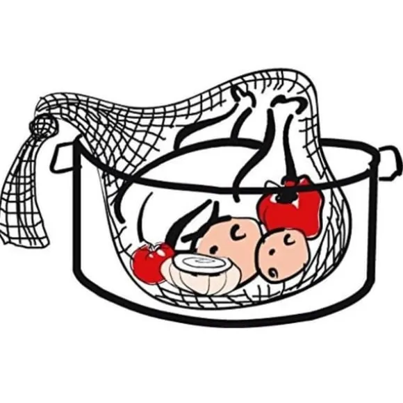 Detta set med 3 förlängningsbara livsmedelsbomullsnät (60 x 30 cm) är perfekt för att förbereda buljonger. Återanvändbara, de rymmer fjäderfäskrov, ben, örter och grönsaker. Knyt nätet efter att det är fyllt, sänk ner det i vattnet och koka för en klar och aromatisk buljong.
