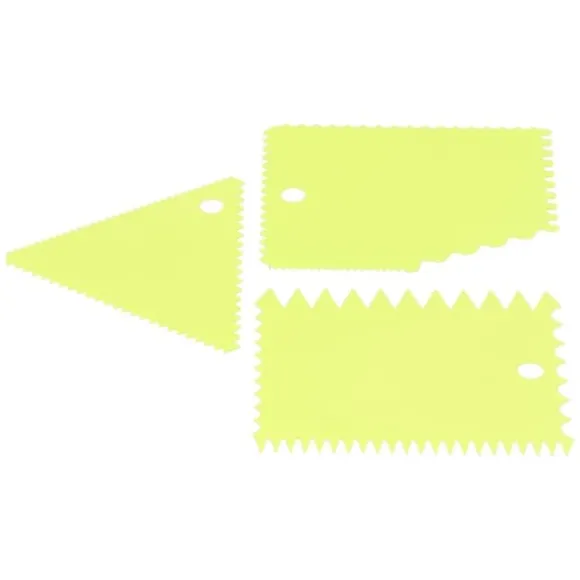 Välkommen till vår butik! Denna gräddskrapa är ett enkelt och lättanvänt verktyg som ger en vacker dekorativ effekt på dina kakor. Den är lätt och kompakt, vilket gör den bekväm att förvara i köket utan att ta upp för mycket plats. Detta mångsidiga verktyg är lämpligt för att skrapa, skyffla och arbeta med olika livsmedel som grädde, kakor, ost, choklad, deg, bröd, pizza, smet och frosting. Tillverkad av hållbar, livsmedelsgodkänd plast är den giftfri, stark, flexibel, återanvändbar och byggd för att hålla. Rengöringen är enkel eftersom den tål maskindisk; diska bara med tvålvatten före första användningen. Det elastiska materialet ger en bekväm känsla och är motståndskraftigt mot skador. Med olika och nya stilar och former erbjuder detta verktyg den kreativitet du önskar för dina bakprojekt. Du får 3 gräddskrapor, som vardera mäter cirka 9,5 cm, 12 cm eller 12 cm och väger cirka 28 g. Nöjdhet: Våra kunder är vår högsta prioritet. Om du upptäcker några produktproblem efter att du mottagit varorna, såsom skador eller felaktig mängd varor, vänligen kontakta säljaren omedelbart. Vi gör vårt bästa för att ge dig tillfredsställande kundservice.