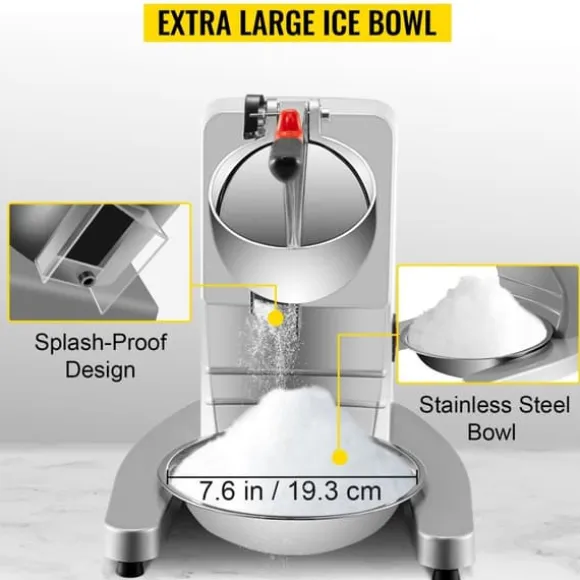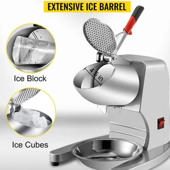 Denna elektriska dubbelbladiga iskross har ett snyggt utseende och kraftfull prestanda. Med en inbyggd 300W kopparmotor kan den krossa 210 lbs (95 kg) isbitar per timme, vilket ger dig mjuk, fluffig, pudrig snö och is som uppfyller dina behov på relativt kort tid.