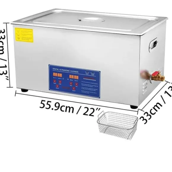 -SUS304-material av hög kvalitet: Tankstorlek: 30L Ultraljudseffekt: 600W Värmeeffekt: 500W. Denna ultraljudsrengörare är tillverkad av robust 304 rostfritt stål, vilket säkerställer att den är vattentät och har en lång livslängd. Dessutom kommer den med en extra korg för att minska kollisioner mellan vassa föremål och vattentanken.