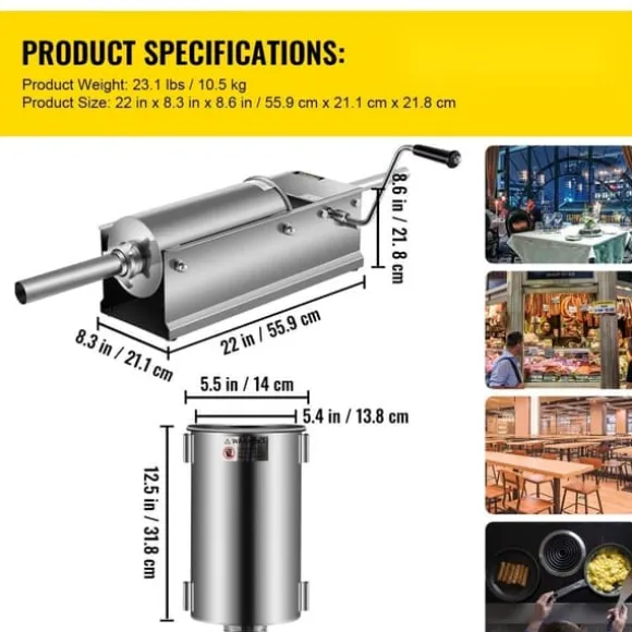 3L rostfritt stål horisontell chorizo-fyllare är det perfekta verktyget för att skapa läckra korvar som chorizo, hotdogs och bratwurst. Denna handdrivna korvfyllare är lämplig för både hemmabruk och kommersiell användning, vilket gör den till ett mångsidigt redskap.