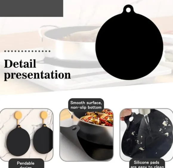 Levereras med en universaldiameter på 220 mm, passar den perfekt till de flesta modeller. Det lätt fjädrande silikonmaterialet stabiliserar inte bara kastruller och stekpannor för säkrare och mer bekymmersfri matlagning, utan minskar också glidljud. Skölj bara efter användning för en skinande ren yta, vilket sparar tid och ansträngning. Observera att denna produkt är designad för induktionshällar och inte är lämplig för keramikhällar.
