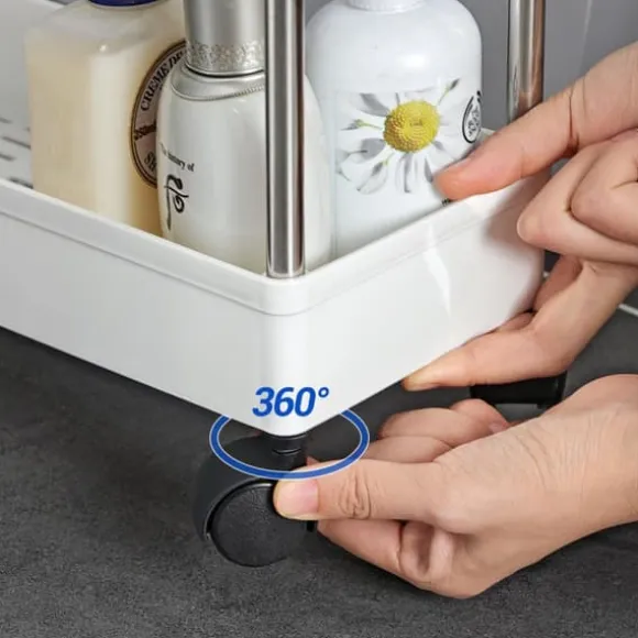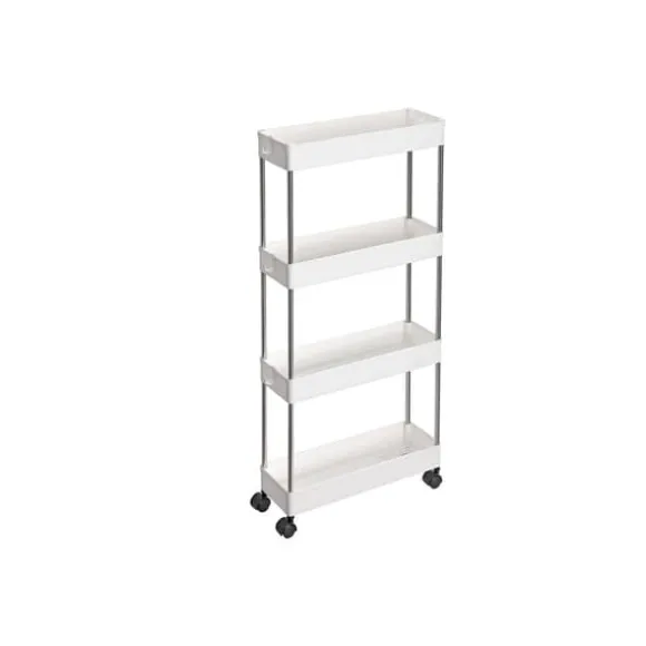 [Platsbesparande] Denna förvaringsvagn med måtten 42 x 13,5 x 87 cm passar i trånga utrymmen i köket, badrummet, sovrummet eller tvättstugan och hjälper dig att få ut mesta möjliga av ditt utrymme[Lätt att flytta med hjul] Tack vare de 4 smidiga svängbara hjulen kan du flytta vagnen dit du behöver den och använda hörnutrymmet för att organisera kryddflaskor eller badrumsartiklar[6 löstagbara krokar] Denna köksvagn levereras med 6 löstagbara krokar för att hänga upp grytlappar, disktrasor eller spatlar för enkel åtkomst och flexibel förvaring[Kan delas upp i två] Vagnen med 4 våningar kan delas upp i två hyllor med 2 våningar, eller en bricka och en vagn med 3 våningar, så att du kan bestämma om du vill använda dem på diskbänken för badrumsartiklar eller på köksbänken för att hålla flaskor och kastruller[Lätt att montera] Med illustrerade instruktioner och delar som är lätta att skilja åt är denna förvaringshylla i plast med 4 nivåer lätt att montera utan verktyg