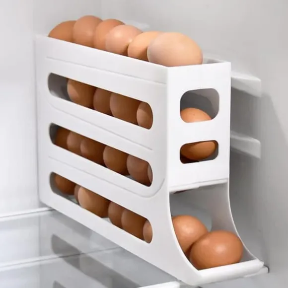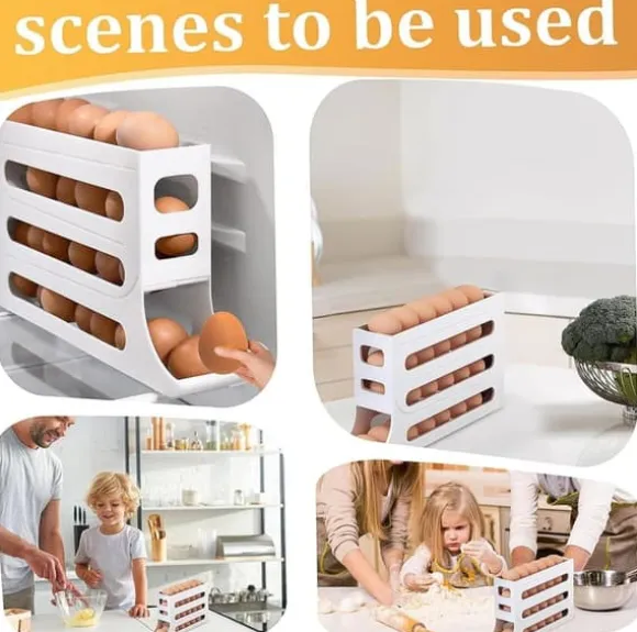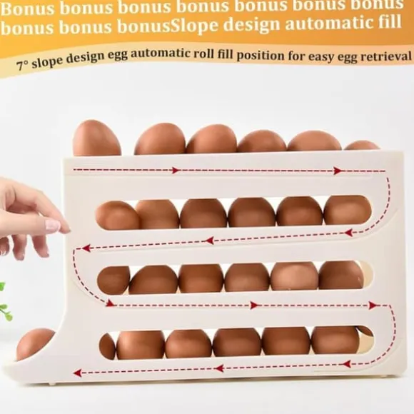 Med en 4-våningsdesign som rymmer cirka 30 ägg erbjuder denna rullande ägghållare ett platsbesparande alternativ för ditt kylskåp eller köksbänk. Lägg till eller ta bort ägg enkelt för att hålla din äggförvaring snygg och organiserad.