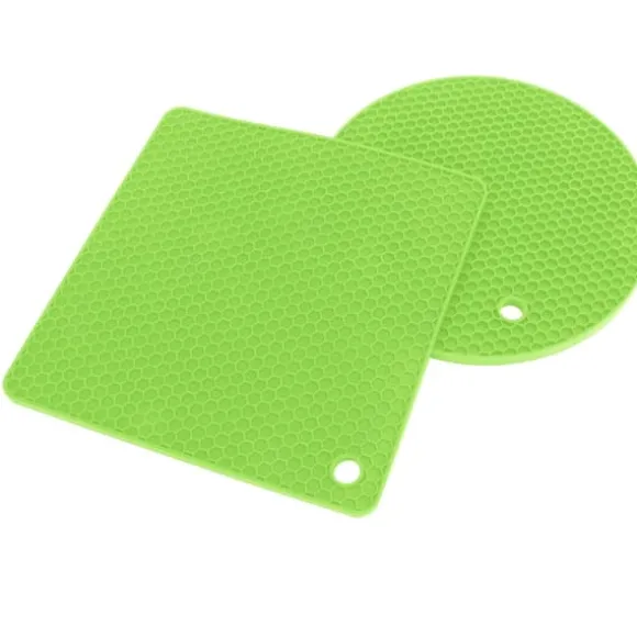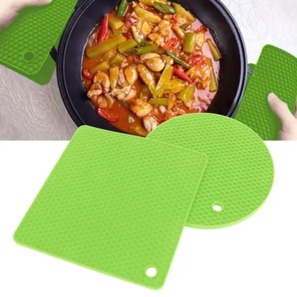 Välkommen till vår butik! Detta set innehåller högkvalitativa silikonkökstillbehör designade för mångsidighet och hållbarhet. Varje förpackning innehåller 5 silikondynor (2 runda och 3 fyrkantiga) för pålitligt värmeskydd och daglig användning. **Produktinformation:** – **Material:** Livsmedelsklassad silikon, BPA-fri, giftfri och säker för matlagning. – **Värmebeständighet:** Tål temperaturer från -40°C till 230°C och skyddar ytor från heta grytor, stekpannor och tallrikar. – **Halkfritt grepp:** Säkerställer stabilitet och förhindrar oavsiktligt spill eller halkning. – **Mångsidig användning:** Perfekt som grytställ, torkdynor, skedhållare eller underlägg. – **Enkelt underhåll:** Handdiskas eller diskmaskinssäker; snabbtorkande bikakedesign motstår fuktuppbyggnad. – **Kompakt förvaring:** Kan rullas ihop eller hängas för platsbesparande bekvämlighet. **Mått och vikt:** – **Kvadratisk storlek:** 185 x 5 mm / 7,3 x 0,2 tum – **Rund storlek:** 180 x 7 mm / 7 x 0,3 tum – **Vikt:** 403 g / 14,2 oz Nöjdhet: Våra kunder är vår högsta prioritet. Om du upptäcker några produktproblem efter att du mottagit varorna, såsom skador eller felaktig mängd varor, vänligen kontakta säljaren omedelbart. Vi gör vårt bästa för att ge dig tillfredsställande kundservice.