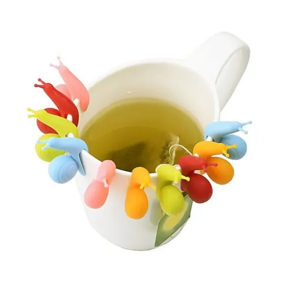 5 st Jättesöta Te-Sniglar/Tepåsehållare som du sätter på kanten av din tekopp och lindar upp tepåsesnöret på så att det inte ramlar ner i tekoppen: