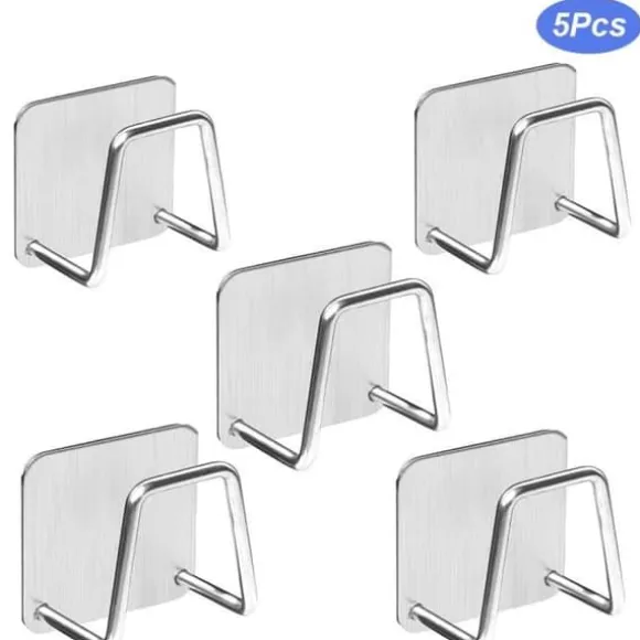 5 st kökssvamphållare, självhäftande svamphållare, storlek: 4,8*4,8*3,6cm; Vikt: 44g/styck; Material: 304 rostfritt stål + viskos; Vatten- och rostbeständig, den kommer inte i kontakt med vatten