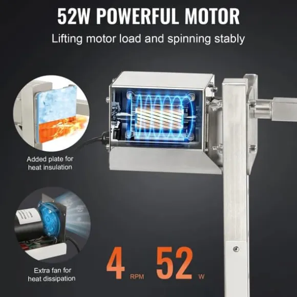 -52W KRAFTFULL MOTOR: Gör bakningen till en lek med detta mångsidiga grillpaket! Den har en kraftfull 52W motor som enkelt snurrar grillstaven med 4 rpm. Produkten kommer också med en platta och fläkt för att ge utmärkt isolering och värmeavledning för din bekvämlighet.
