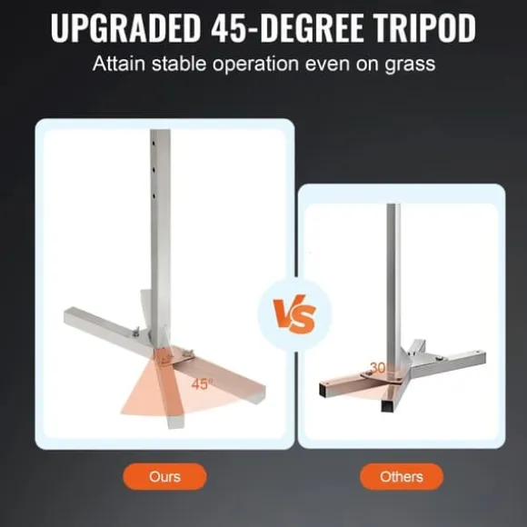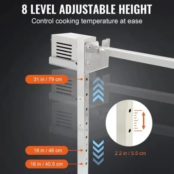 -8-Level Höjd Justerbar: Designad med 8 hål placerade på olika höjder för att enkelt justera grillen. Grillkit för spett är konstruerade för att kontrollera tillagningstemperaturer. Justerbar höjd: 16″-31″. Det uppgraderade 45-gradersstativet säkerställer ett stabilt stativ även på gräs.