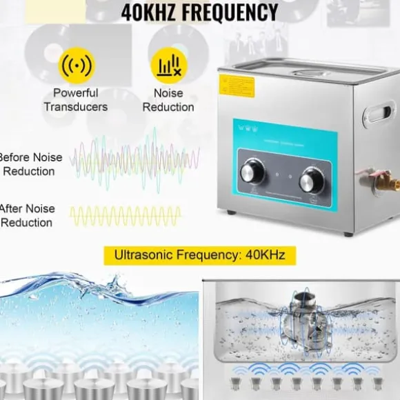 -Fantastisk rengöring: Förbättrad 40KHz ultraljudseffekt, perfekt för att ta bort olja, vax, fläckar från hål, ytor, sprickor och mer. Den stora 6,5-liters vattentanken rymmer fler föremål på en gång och är tyst när den används. Avbryt aldrig ditt andra arbete.