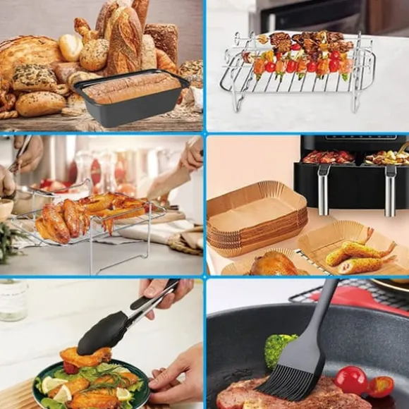 Gallerhylla: Vår gallerhylla utökar din air fryers kapacitet genom att skapa fler ytor att laga mat på samtidigt. Du kan tillaga flera rätter samtidigt och dra nytta av gallerhyllans luftiga design som främjar jämn tillagning.