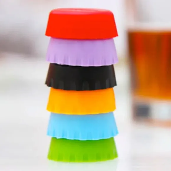 Ibland blir man sugen på en god läsk eller annan dricka, men orkar inte dricka upp hela. Det problemet löser du lätt med dessa färgstarka kapsyler av silikon! Kapsylerna fäster enkelt mot de flesta, vanligt förekommande flaskor och håller drycken fräsch och god. Ett paket innehåller 6 st kapsyler i olika färger. Kapsylerna passar även bra till flaskor med soja, vinäger med mera.