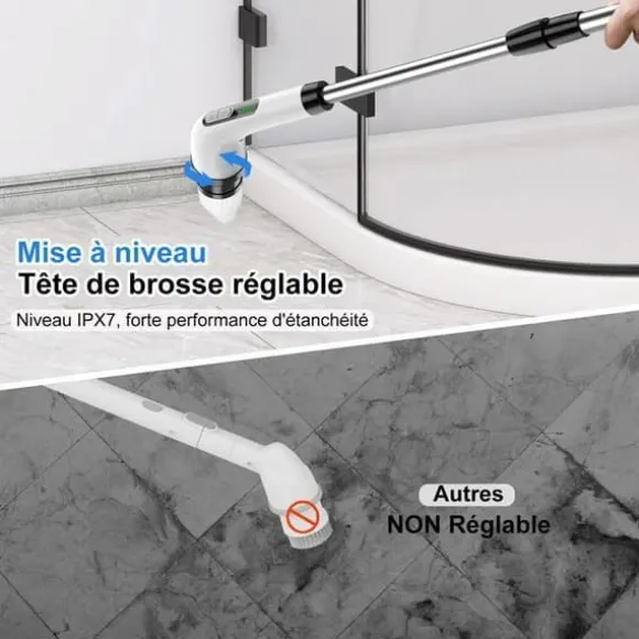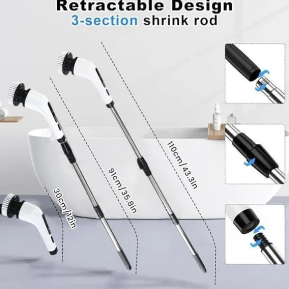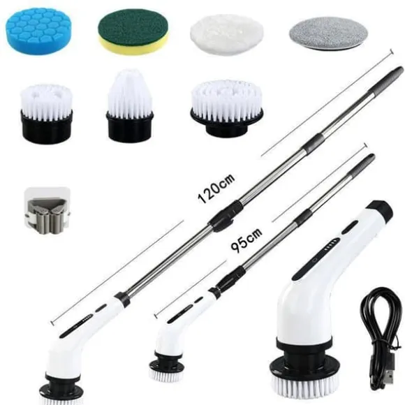 7 multifunktionella borsthuvuden: Den elektriska borstsatsen innehåller 7 utbytbara borsthuvuden, som möter alla rengöringsområden i kök och badrum, såsom badrum, kök, grill, spishäll, kraftigt oljade väggar, spricka, diskho, golv, injekteringsbruk, badkar, toalett, bil, bilhjul, golv, koppar, fönster, disk m.m. Alla hörn kan rengöras som nya med vår kraftfulla roterande borste. En för att ersätta de andra borstarna.