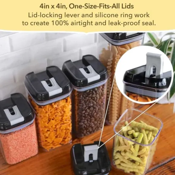 - Stapelbara och platsbesparande: Alla lock passar alla burkar vilket gör det enkelt att stapla och organisera dem i skåp eller kökslådor.