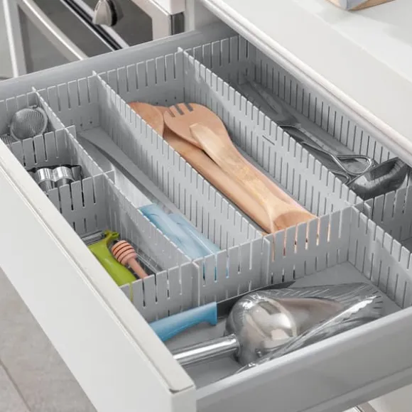 This adjustable drawer organiser adapts perfectly to different dimensions and spaces, according to your needs. It includes instructions for use in order to place it correctly in various positions. The16 units included can be cut and joined together perpendicularly to fully fit the desired space. They can also be positioned vertically.