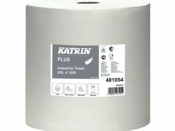 Aftørringsrulle Industri Katrin Plus 4-lag Ø36cm B38cmxL360m Mix Hvid,1 Rl