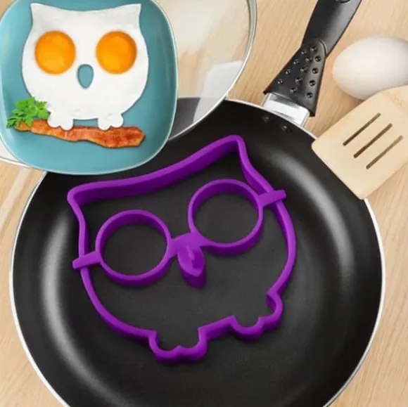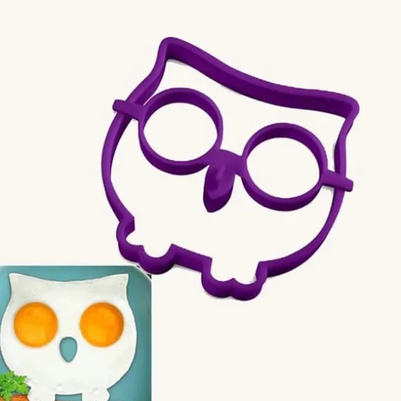 Med denna roliga äggform i silikon kan du göra stekta ägg i form av en uggla. Du behöver två ägg. Knäck äggen i ögonen på formen så stannar gulan kvar som ögon och vitan rinner ut under till kroppen.