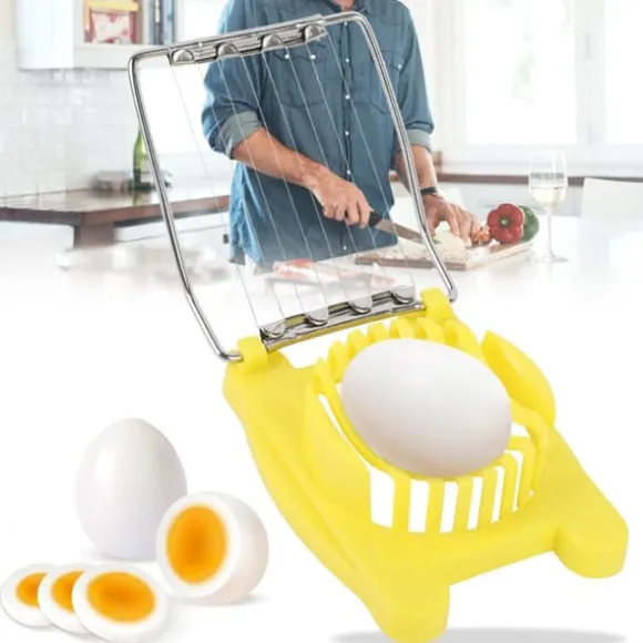 Vi presenterar vår äggskärare, gjord av förstklassigt rostfritt stål och plast, som säkerställer en giftfri och lång livslängd. Det är lätt att rengöra, skölj helt enkelt med vatten och milt rengöringsmedel.