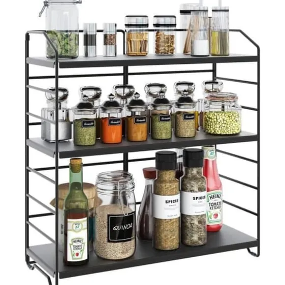 Mer mer! Den här 3-nivå, vikbara kryddhyllan erbjuder extra hyllor och en lösning för att använda utrymmet; hjälper till att rensa bort oordning och hålla saker organiserade; den sparar utrymme och gör rengöring av din arbetsyta mycket enklare och mer effektiv. — Vattentålig och rostbeständig förvaringshylla är
